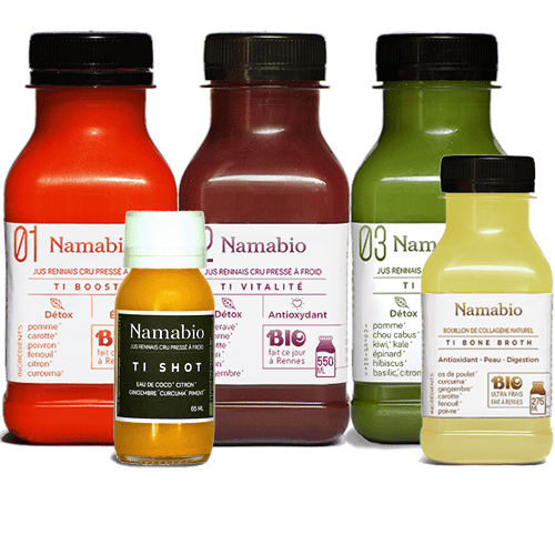 Les jus de légumes crus de l’atelier Namabio se conservent 6 jours au réfrigérateur entre 0 et 4°C (4 jours pour le lait végétal). La cure de 5 jours est livrée en 2 fois. Vous choisissez la date de la première livraison sur le site Namabio, la seconde interviendra dans les 2 ou 3 jours suivants.