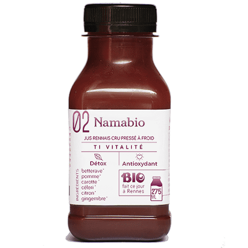 Jus frais pressé à froid à Rennes et certifié bio. No HPP (non stabilisé par haute pression). Ce jus à forte concentration en antioxydants, riche en cuivre, fer, nitrate, magnésium et manganèse, a le pouvoir de protéger nos cellules du stress oxydatif. Il contient des vitamines A, K, B2 et B9 et nous offre une réelle sensation de bien-être. C’est la boisson préférée des sportifs.